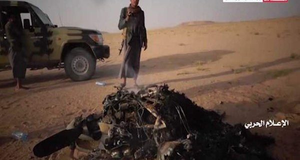الإعلام الحربي اليمني يوزع مشاهد لحطام الطائرة التجسسية المقاتلة كاريال