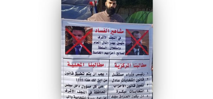 وقال مصدر إن “المتظاهرين يطالبون بإقالة الحكومة المحلية في النجف ومحاسبة المحافظين السابقين المتورطين بالفساد، بالإضافة الى محاسبة قتلة التظاهرين”.