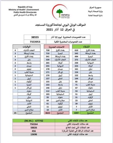الصحة تسجل 4622 إصابة جديدة و 25 حالة وفاة بكورونا
