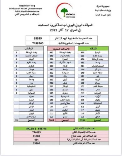 الصحة تسجل 5663 اصابة جديدة بكزورونا