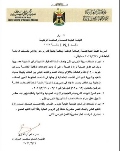 بالوثيقة : قرارات اللجنة العليا للصحة المتعلقة بامتحانات المدارس والجامعات
