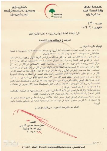 بالوثيقة : وزير الصحة يفاتح البرلمان العراقي لاستثناء ملاكات الوزارة من قانون التقاعد المعدل