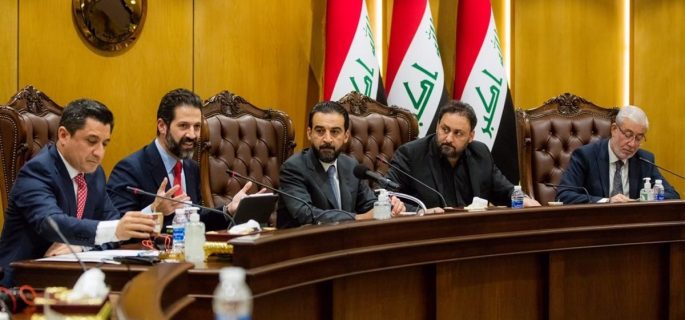 وعقد الوفد فور وصوله اجتماعاً مع رئيس المجلس محمد الحلبوسي للتباحث بشأن إكمال مناقشة الخلاف على حصة الإقليم في موازنة 2021 الاتحادية.