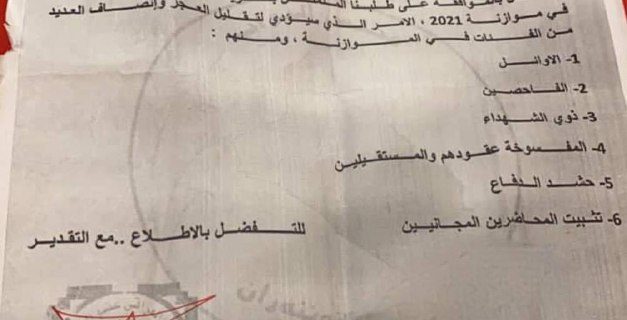 بالوثيقة.. الحلبوسي يوجه بشأن بانصاف ست فئات في الموازنة