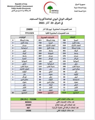 الصحة تسجل 4494 اصابة جديدة بكورونا