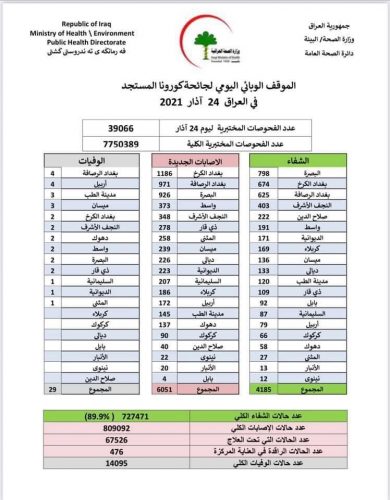الصحة تسجل 6051 اصابة جديدة بكورونا