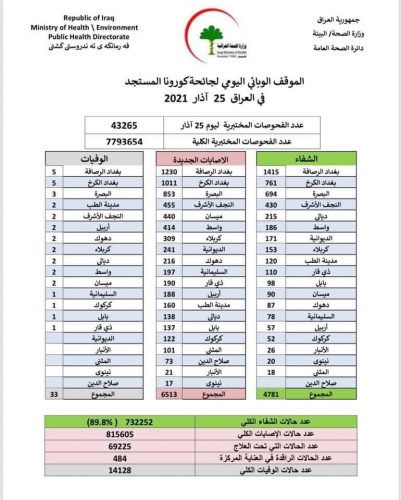 الصحة تسجل 6513 اصابة جديدة بكورونا
