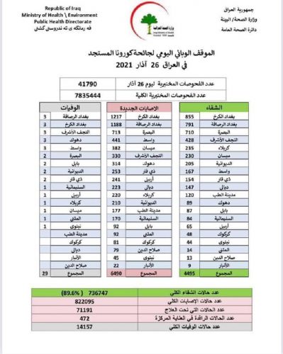 الصحة تسجل 6490 اصابة جديدة بكورونا