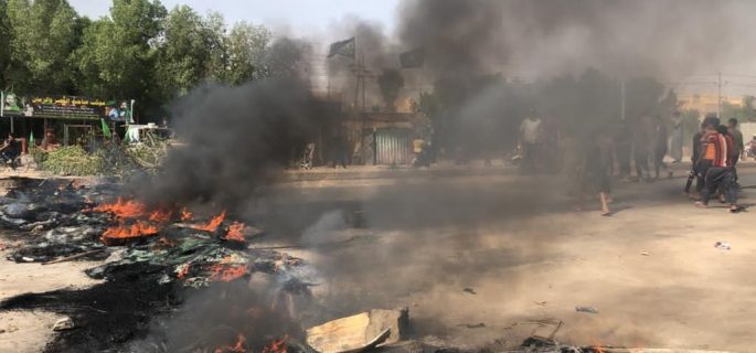 متظاهرون يقطعون طريقا رئيسا في ذي قار بالإطارات المحترقة