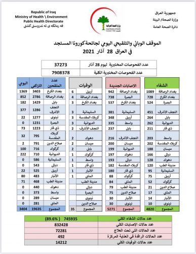 الصحة تسجل 5271 إصابة جديدةبكورونا وتلقيح نحو 20 ألف مواطن