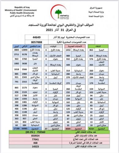 الصحة تسجل 6664 إصابة جديدة بكورونا