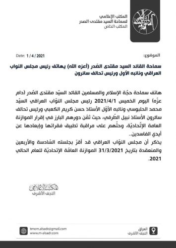 لقاء هاتفي بين الصدر والحلبوسي والكعبي والطرفي