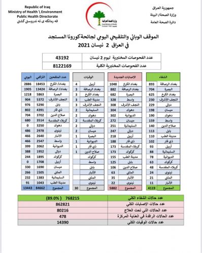 الصحة تسجل 30 وفاة و5882 إصابة جديدة بكورونا