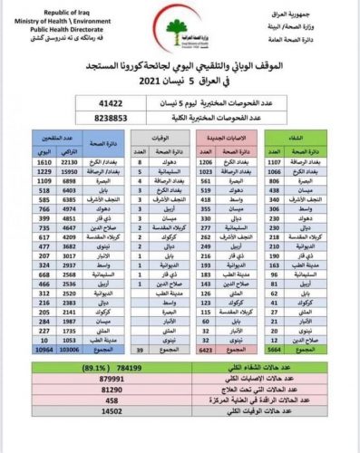 الصحة تسجل 6432 اصابة جديدة بكورونا