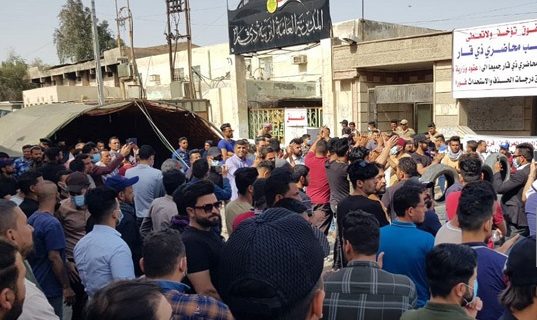 محاضرو ذي قار يواصلون الاعتصام وإغلاق مديرية التربية للمطالبة بالتثبيت