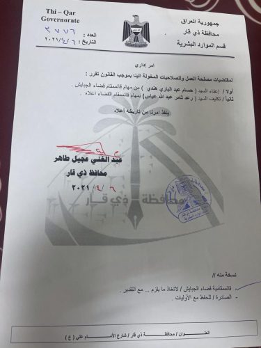 بالوثيقة.. الأسدي يعفي مسؤولا محليا من منصبه ويكلف بديلا