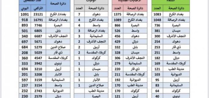 الصحة تسجل 7300 اصابة جديدة بكورونا