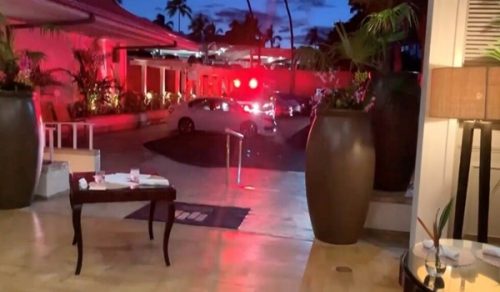 وأظهرت مقاطع فيديو على وسائل التواصل الاجتماعي ضيوفا في قاعة الرقص بالفندق والشرطة تنتشر في مكان الحادث.