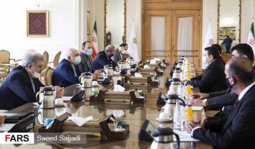 وقال ظريف إن “إيران تحترم دائما استقلال وأمن وسلامة أراضي العراق وسيادته المتكاملة وترحب بدوره البناء في العلاقات الإقليمية”.