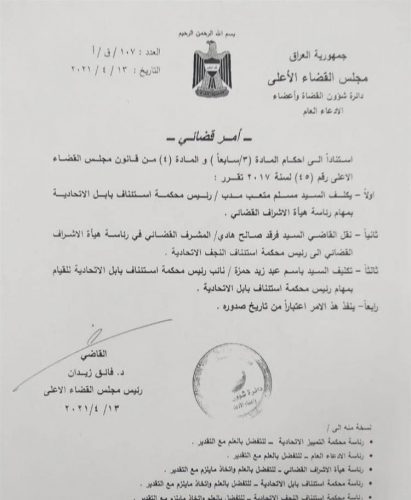 بالوثيقة.. القضاء الأعلى يجري تغييرات في مناصب عليا