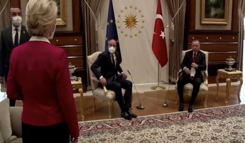 وفيما يرى البعض أن ما حدث في تركيا لا يتجاوز حدود الخطأ البروتوكولي، يذهب البعض الآخر للقول بأن الأمر عبارة عن مسألة سياسية خطيرة متهما الرئيس التركي بمحاولة إذلال الأوروبيين، بحسبما أفادت وكالة آكي الإيطالية للأنباء.