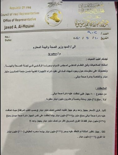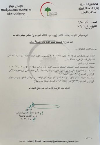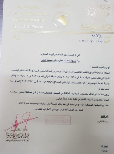 بالوثائق.. قرار بسحب يد مدير عام صحة ديالى بسبب الفساد