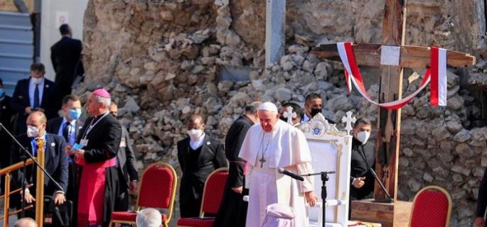 وقال الكاردينال ساكو قوله إن ” حضور البابا كسر حاجز الخوف في المجتمع المسيحي وأعطاهم الشجاعة”، مضيفا أن “كل العراقيين كانوا هناك لملاقاة البابا الذي بكى مرات عديدة خلال الزيارة ، لا سيما في حوش البيا في الموصل حيث داعش قصفت أربع كنائس هناك “.