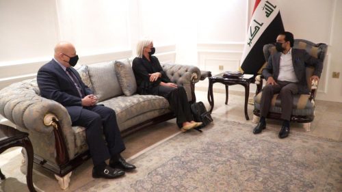 استقبل رئيس مجلس النواب محمد الحلبوسي ممثلةَ الأمين العام للأمم المتحدة في العراق جينين بلاسخارت، بحضور المستشار الخاص ورئيس فريق التحقيق التابع للأمم المتحدة فيما يخص الجرائم المرتكبة من قبل داعش الإرهابي (يونيتاد) كريم خان.