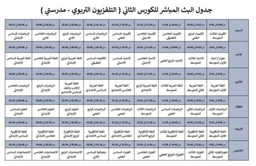التربية تعلن جدول البث المباشر للكورس الثاني