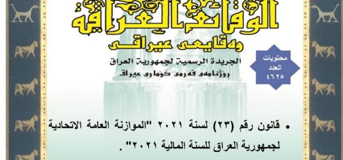 واضافت محمود، ان “العدد تضمن نشر قانون رقم (23) لسنة 2021، ‏الموازنة العامة الاتحادية لجمهورية العراق للسنة المالية ‏‏2021”.