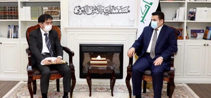 استعراض مستشار الأمن القومي، قاسم الأعرجي، اليوم الأحد، مع السفير الياباني لدى بغداد سوزوكي كوتارو، العلاقات بين البلدين.