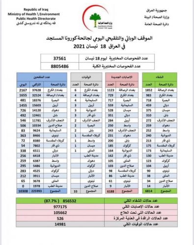 الصحة تسجل 6188 إصابة جديدة بفيروس كورونا