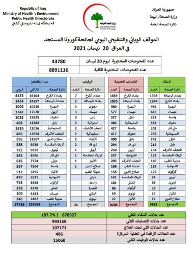 الصحة تسجل 8208 اصابة جديدة بكورونا