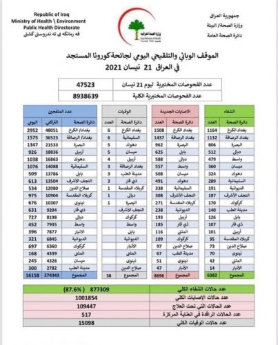 الصحة تسجل 8696 إصابة جديدة بكورونا
