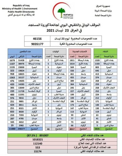 الصحة تسجل 8017 اصابة جديدة بكورونا