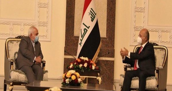 من جانبه، نقل الوزير ظريف تحيات الرئيس حسن روحاني إلى الرئيس برهم صالح، وتعازيه بفاجعة حريق مستشفى ابن الخطيب، وتمنياته للشعب العراقي بالأمن والسلام، مؤكداً التزام بلاده دعم استقرار العراق وسيادته والتطلع لتعزيز العلاقات المتميزة التي تجمع البلدين، فيما حمّل السيد الرئيس، الوزير، تحياته إلى الرئيس روحاني والشعب الإيراني وتمنياته بالمزيد من التقدم والاستقرار.
