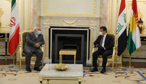 بحث رئيس حكومة الاقليم مسرور بارزاني، الثلاثاء، مع وزير الخارجية الايراني محمد ظريف تنفيذ قانون الموازنة والعلاقة بين الاقليم والحكومة المركزية.