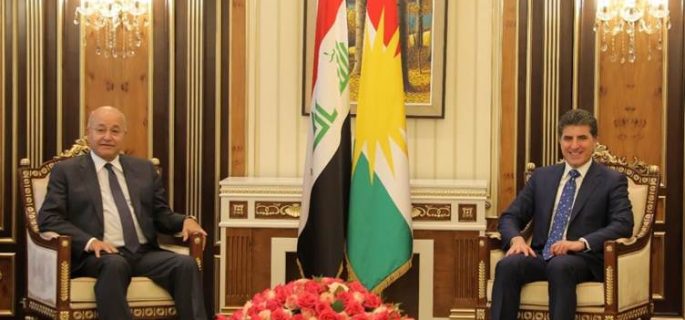 بحث رئيس إقليم كردستان ونيجيرفان بارزاني، الخميس، مع رئيس الجمهورية برهم صالح سبل التمهيد للانتخابات المبكرة وضرورة تجاوزات الخلافات والصراعات واللجوء إلى الحوار والتفاهم بين الأطراف السياسية.