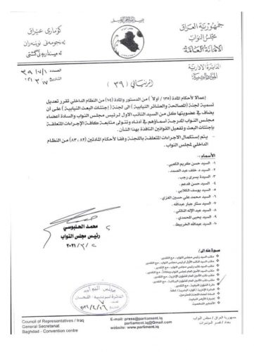 بالوثيقة.. الحلبوسي يوقع أمرا نيابيا يعيد “لجنة اجتثاث البعث” إلى العمل البرلماني
