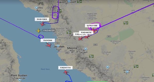 ويظهر موقع فلايت رادار 3 طائرات عالقة في الجو كانت وجهتها نحو جد
