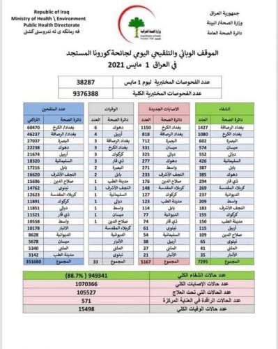 الصحة تسجل 5167 اصابة جديدة بكورونا
