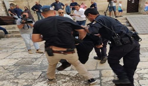 اعتدت قوات الأمن الإسرائيلية، اليوم السبت، على عشرات المصلين المسيحين عند “باب الجديد” وداخل أزقة البلدة القديمة، قرب كنيسة القيامة شرقي مدينة القدس المحتلة؛ وذلك خلال محاولتهم الوصول إلى الكنيسة لإحياء عيد “سبت النور”.