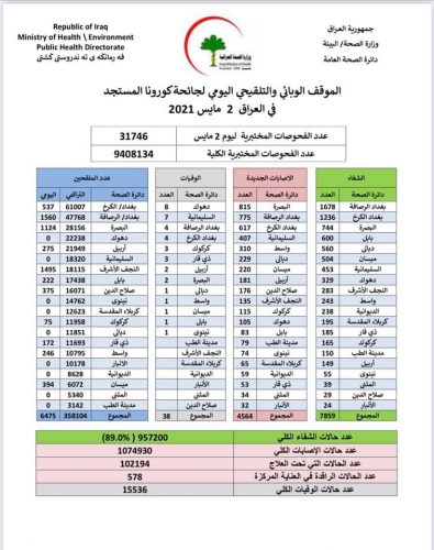 الصحة تسجل 4564 اصابة جديدة بكورونا