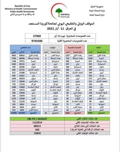 الصحة تسجل 5287 إصابة جديدة بكورونا