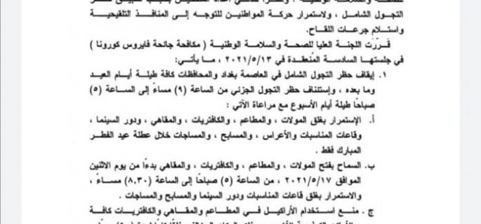 بالوثيقة.. اللجنة العليا تقرر إيقاف الحظر الشامل واستئناف الجزئي