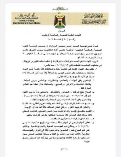 بالوثيقة.. اللجنة العليا تقرر إيقاف الحظر الشامل واستئناف الجزئي