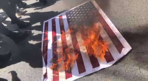 بالصور.. إحراق العلم الاسرائيلي والأميركي وسط العاصمة بغداد