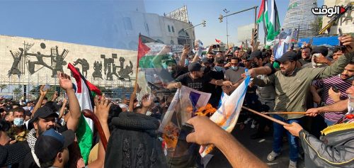 في هذه الأثناء، فإن العراق باعتباره أحد أهم البلدان الإسلامية، والذي شجَّعه الغربيون على الدخول في عملية تطبيع العلاقات بين العرب والکيان الصهيوني بعد تطبيع عدة أنظمة عربية، ربما شجب جرائم الکيان الصهيوني أكثر من غيره من المجتمعات الإسلامية.