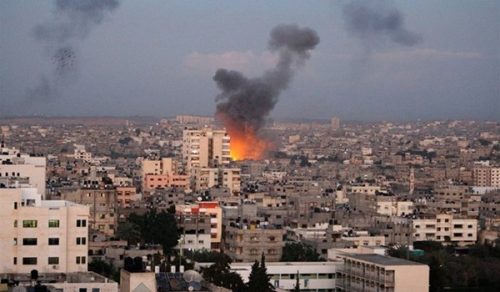 وشنّ الاحتلال الإسرائيلي غارات عنيفة على مناطق مختلفة من القطاع، وسمع انفجار هز المناطق الشمالية لمدينة غزة، فيما قصفت طائرات الاستطلاع الإسرائيلية منزلاً بحي الزيتون جنوب المدينة، بالتزامن مع شن 4 غارات على منزل غرب غزة. واندلع حريق بمنزل في بيت لاهيا بسبب القذائف الدخانية التي أطلقتها مدفعية الاحتلال.