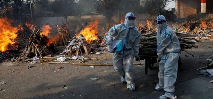 تسببت موجة الفيروس التاجي في إنهاك نظام المستشفيات الهندي مع نقص حاد في الأكسجين والأدوية الهامة، وانتشرت طوابير انتظار طويلة للجنازات في محارق الجثث والمقابر، وكذلك صور المتوفين المشتبه في إصابتهم بـ”كوفيد” وهي تطفو في نهر الغانج المقدس أو تُدفن في مقابر ضحلة. انتهى